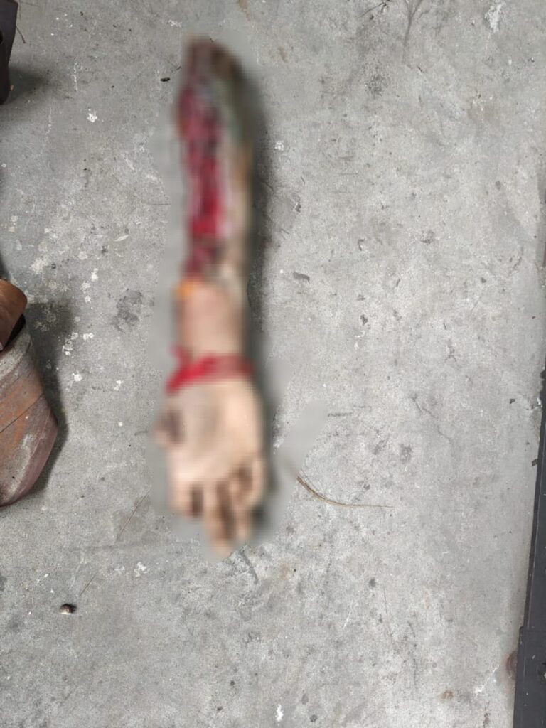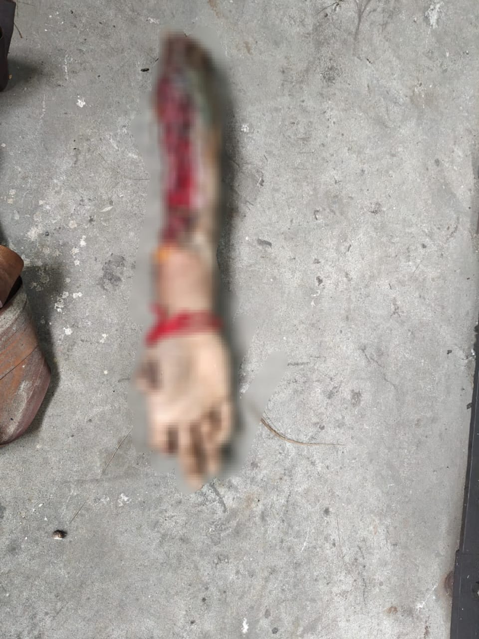 நிறுவனத்தின் ஸ்டோர் ரூம் அருகே துண்டாக வலது கை ஒன்று கிடப்பதாக அங்கு மேலாளராக பணிபுரியும் வைரவநாதன் என்பவர் உரிமையாளரிடம் கூறியுள்ளார்