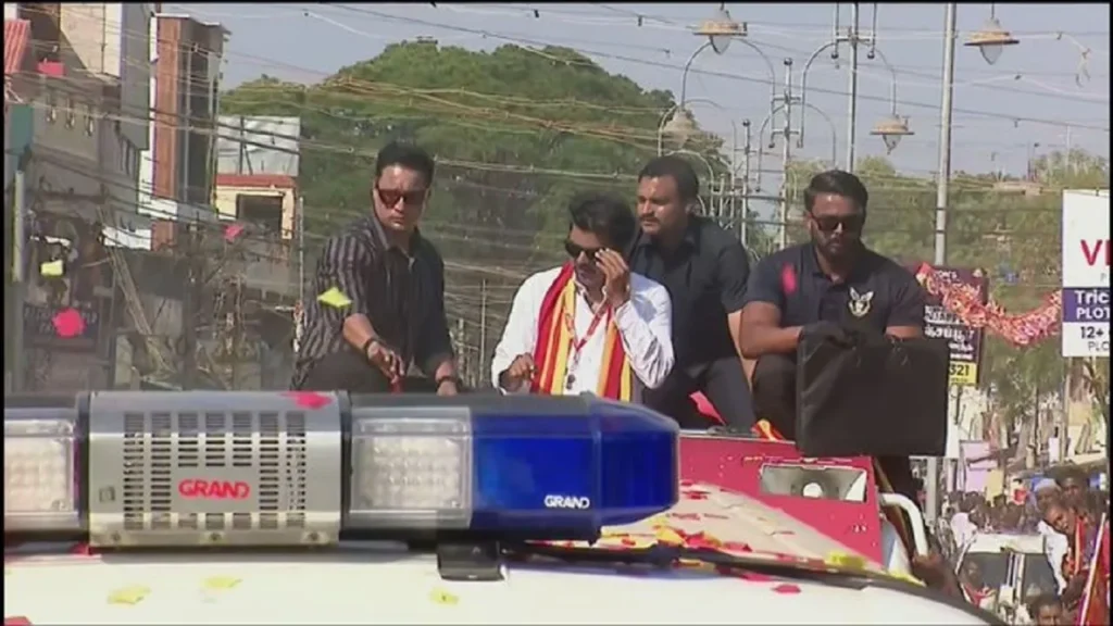 பிரசாரத்தின் இடையே வயர்லஸ் சாலையில் அமைந்துள்ள புனித அந்தோணியார் ஆலயத்திற்குச் சென்ற விஜய், ஆலய வாசலில் இருந்து மண்டியிட்டவாறு சென்று மனம் உருகி பிரார்த்தனை செய்தார். இதனைத் தொடர்ந்து மீண்டும் பிரசார வாகனத்தில் ஏறிய அவர், சுமார் 4 கிலோ மீட்டர் சுற்றளவு கொண்ட பாதையில் ரோடு ஷோ நடத்தினார். சாலையின் இருபுறங்களிலும் திரண்டிருந்த பல்லாயிரக்கணக்கான தொண்டர்கள் மற்றும் பொதுமக்கள், விசில் அடித்தும் ஆரவாரம் செய்தும் அவருக்குத் தங்களது ஆதரவை வெளிப்படுத்தினர்.