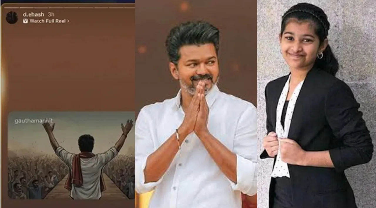 நடிகர் விஜய அரசியல் கட்சி தொடங்கியதில் இருந்து பல சிக்கல்கள், தடைகளை சந்தித்து வந்தாலும், தேர்தல் பிரச்சாரங்களில் அவரை பார்க்க கூடிய கூட்டம் பெரும் பரபரப்பை ஏற்படுத்திய நிலையில், தற்போது அவர் மகள் தனது இன்ஸ்டா ஸ்டேரியில் வெளியிட்டுள்ள பதிவு பரபரப்பை மேலும் அதிகரித்துள்ளது,